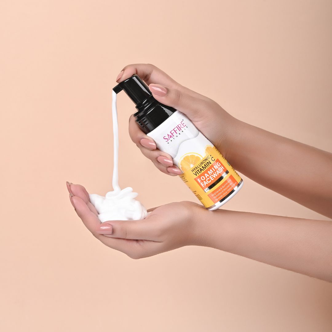 Transform your cleansing routine with our Hyaluronic Acid & Vitamin C Foaming Face Wash! Experience the power of hydration and radiance in every wash with this luxurious foaming face wash. Enriched with Hyaluronic Acid and Vitamin C, it deeply hydrates, brightens, and evens out skin tone. This multi-action cleanser effectively removes dirt, impurities, and makeup without over-drying your skin, leaving it refreshed and rejuvenated after just one wash.