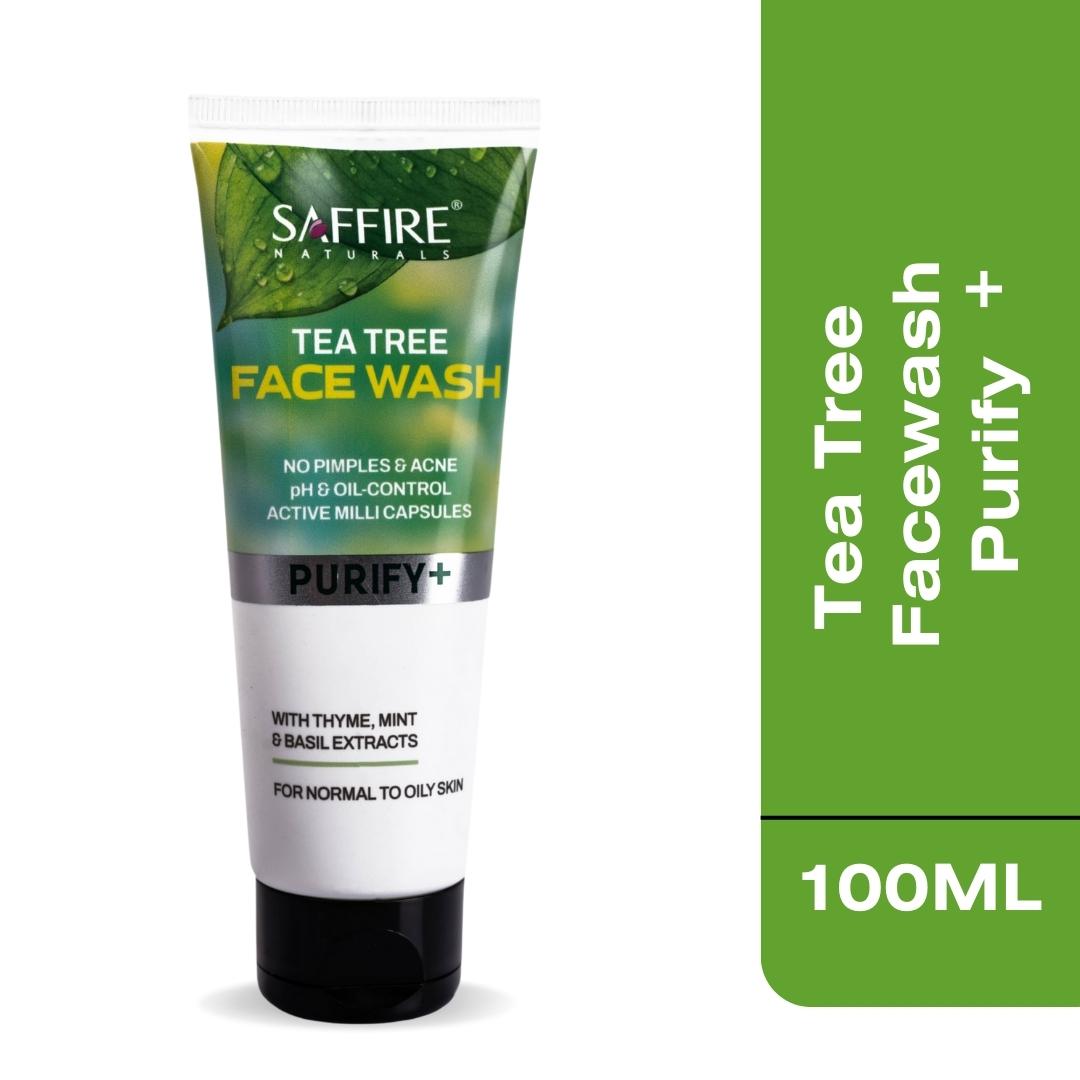 The product aims at treating acne prone skin. Acne and breakouts majorly happens in areas that sites most number of oil glands. Enriched with Thyme, Basil & Mint Extracts Saffire Naturals Tea tree purifying face wash fight acne and breakout by balancing the pH level of the skin. And also Say No to Suntan, Blemishes and Hyperpigmentation. Get a Beautiful, mattifying look everytime you step out in the sun with Saffire Naturals Sunfree Matte Look 4-in-1 Sunblock SPF 40 PA+++
