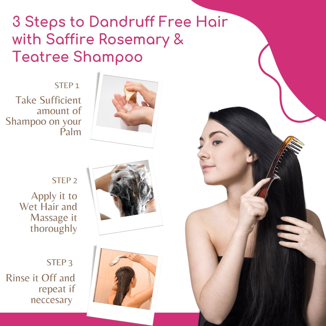 Combat dandruff effectively with our Rosemary Tea Tree Anti-Dandruff Shampoo! Enriched with Rosemary and Tea Tree, renowned for their anti-dandruff and scalp-soothing properties, this shampoo provides gentle yet effective cleansing for all hair types. Rosemary stimulates hair growth and strengthens follicles, promoting healthier, fuller hair. Tea Tree oil alleviates scalp irritation and reduces flakiness caused by dandruff, leaving your scalp refreshed. Infused with Neem and Tulsi extracts, known for their antibacterial and nourishing properties, this formula keeps your scalp clean and healthy. Tulsi nourishes hair follicles, resulting in stronger, shinier hair. Gentle on hair and scalp, it cleanses thoroughly without stripping essential moisture.