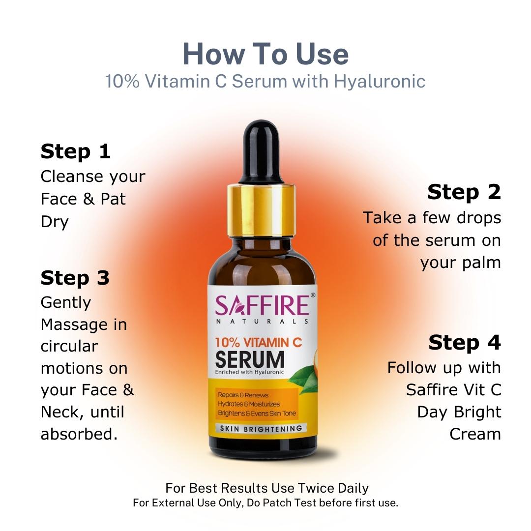 Discover luminous skin with our 10% Vitamin C Serum! Formulated with the finest natural ingredients, this potent serum revitalizes and rejuvenates your skin, leaving it glowing and radiant. The 10% concentration of Vitamin C brightens the skin, fades dark spots, and promotes a youthful complexion. It hydrates intensely, retains moisture, and keeps the skin plump and supple. Suitable for all skin types, this serum boosts collagen production, fights signs of aging, and enhances your skin's natural radiance without irritation.