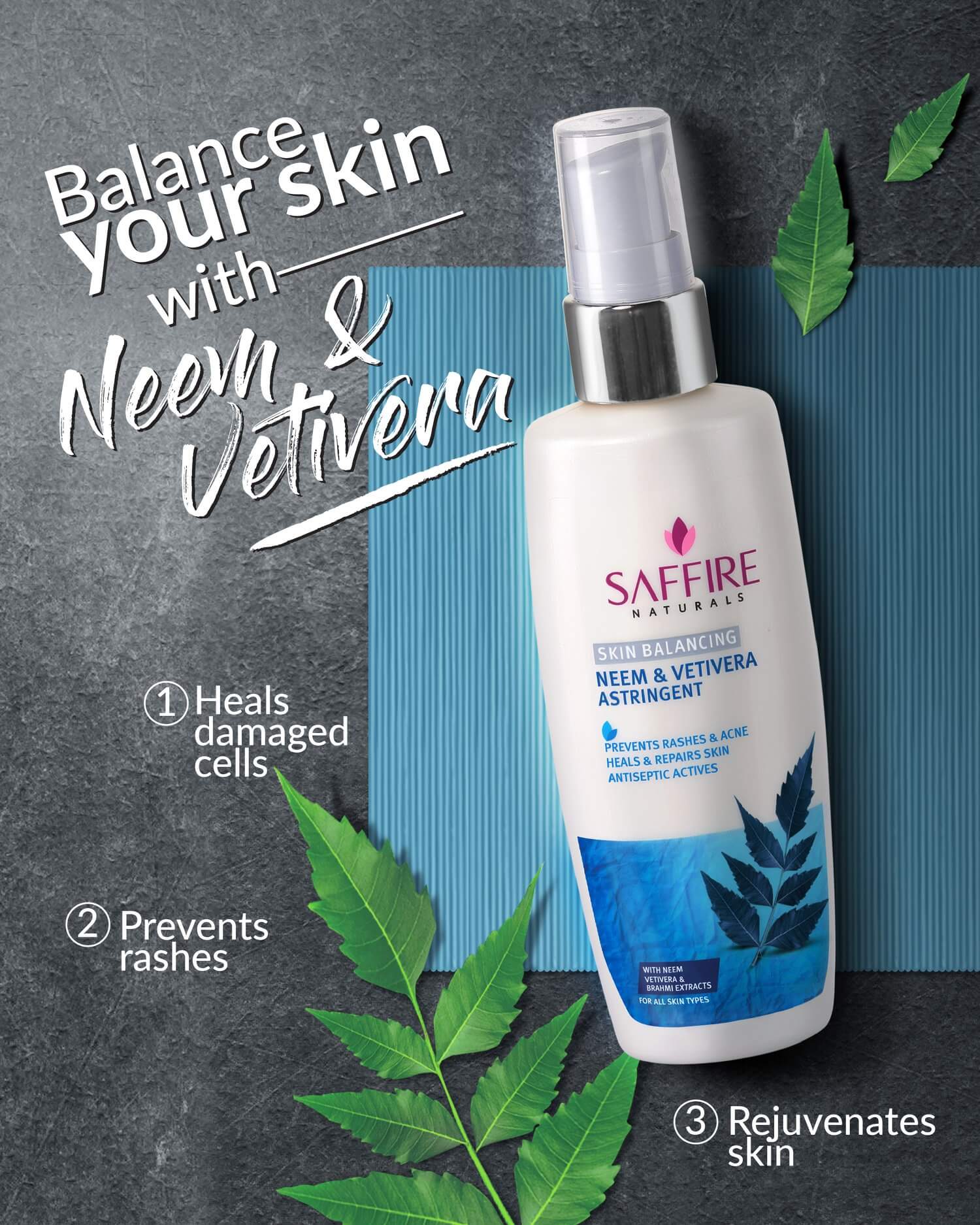 Saffire Naturals Neem Vetivera Skin Balancing Astringent| For Acne & Problem Free Skin 100ml