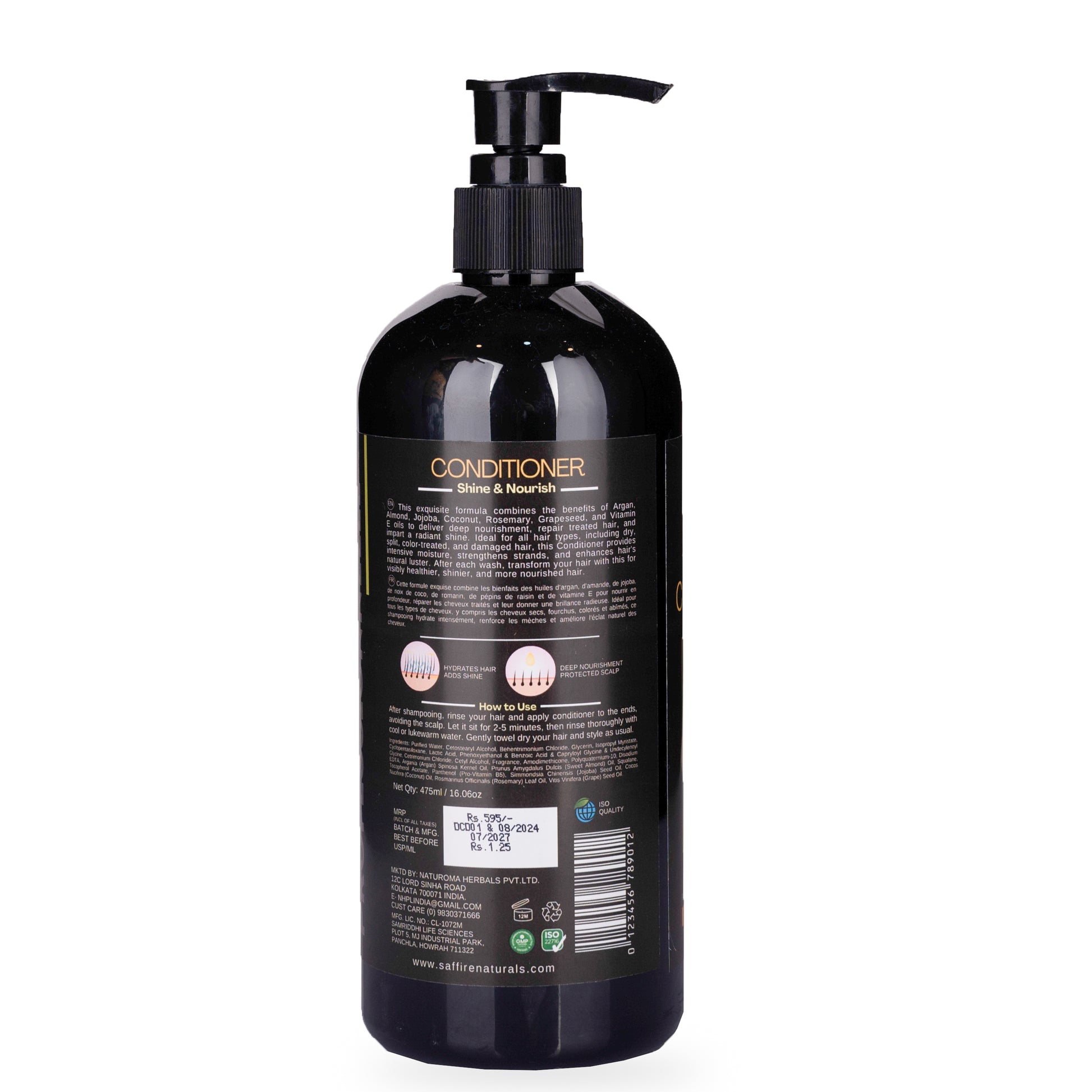 The Saffire Shine & Nourish range combines a blend of seven oils, including Argan, Almond, Jojoba, Coconut, Rosemary, Grapeseed Oil, and Vitamin E, to deliver deep nourishment and a glossy, lustrous shine.